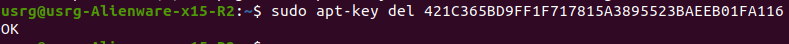 sudo apt-key del 421C365BD9FF1F717815A3895523BAEEB01FA116