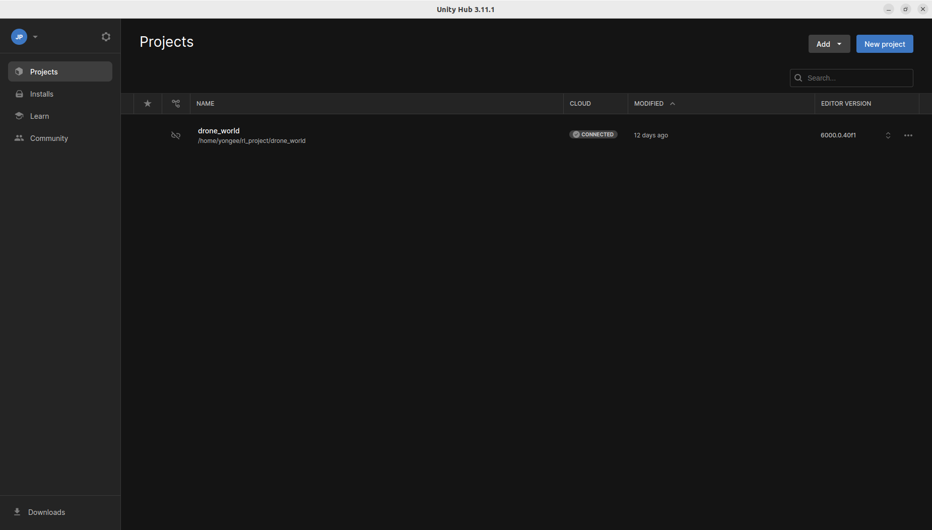 - 유니티 허브 실행 시 기존 생성된 프로젝트 리스트 확인 가능
