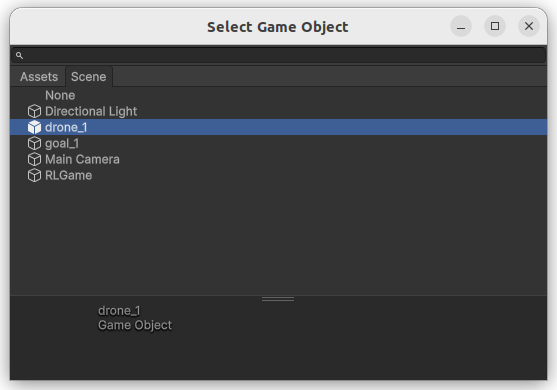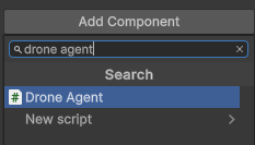- 추가된 컴포넌트에서 Drone Agent 우측에 잇는 작은 마크를 클릭하여 Select Game Object 창 열기