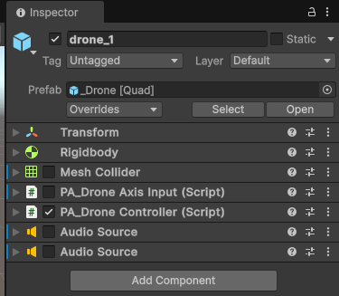 - drone_1 선택하여 오브젝트 연결
