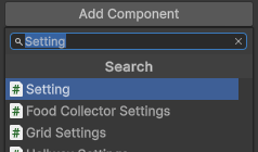 - Setting 검색후 검색된 Setting 스크립트를 선택하여 추가