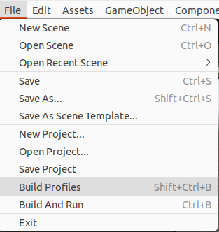 - 상단 메뉴바에서 File - Build Profiles 클릭