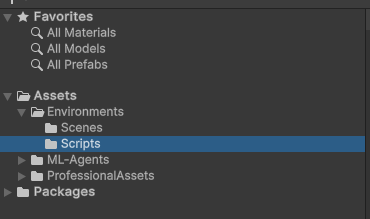 - 프로젝트 뷰에서 Environments 폴더 안에 Scripts 폴더 생성