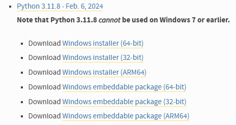 이번에는 3.11.8을 설치하겠습니다. Download Windows installer (64-bit) 를 클릭하여 다운로드합니다.