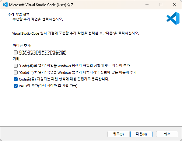 추가 작업은 원하는 작업이 있다면 선택합니다.