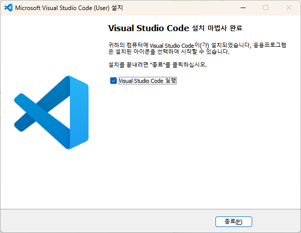 다음 창이 나오면 VSCode 설치가 완료되었습니다.