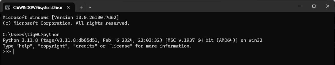 아래 사진과 같이 Python 3.11.8이 보이면 성공입니다.