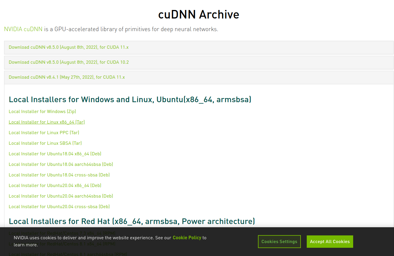 cuDNN Archive