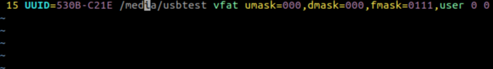 UUID="your_uuid" "your directory" vfat umask=000,dmask=000,fmask=111,user 0 0